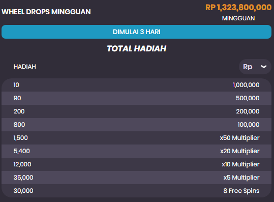 Syarat dan Ketentuan Wheel Drops Mingguan :