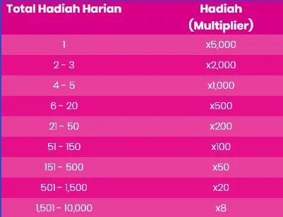 6. Pemain dapat memenangkan hingga 2 hadiah setiap harinya.